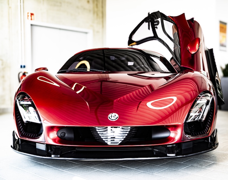 Das italienische Design-Kunstwerk geht zurück auf den legendären Tipo 33 Stradale aus dem Jahr 1967, eines der schönsten Coupés aller Zeiten. Die moderne Interpretation hat atemberaubend geschwungene Formen und Schmetterlingstüren.